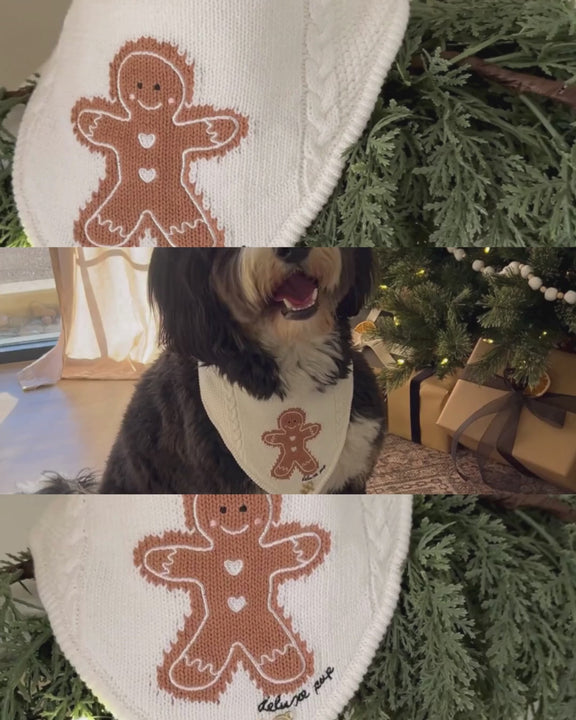 Gmas Gingerbread Bandana is a sweet nod to family tradition and the warmth of grandma’s kitchen. Inspired by her hand-sewn gingerbread, this bandana is here to spread a little extra cheer, pups included. Features our exclusive DeluxeFIT design - finished with a ribbed knit border, curved neckline, snaps, and a luxe die-cut gold tag for a look that’s uniquely TDP.